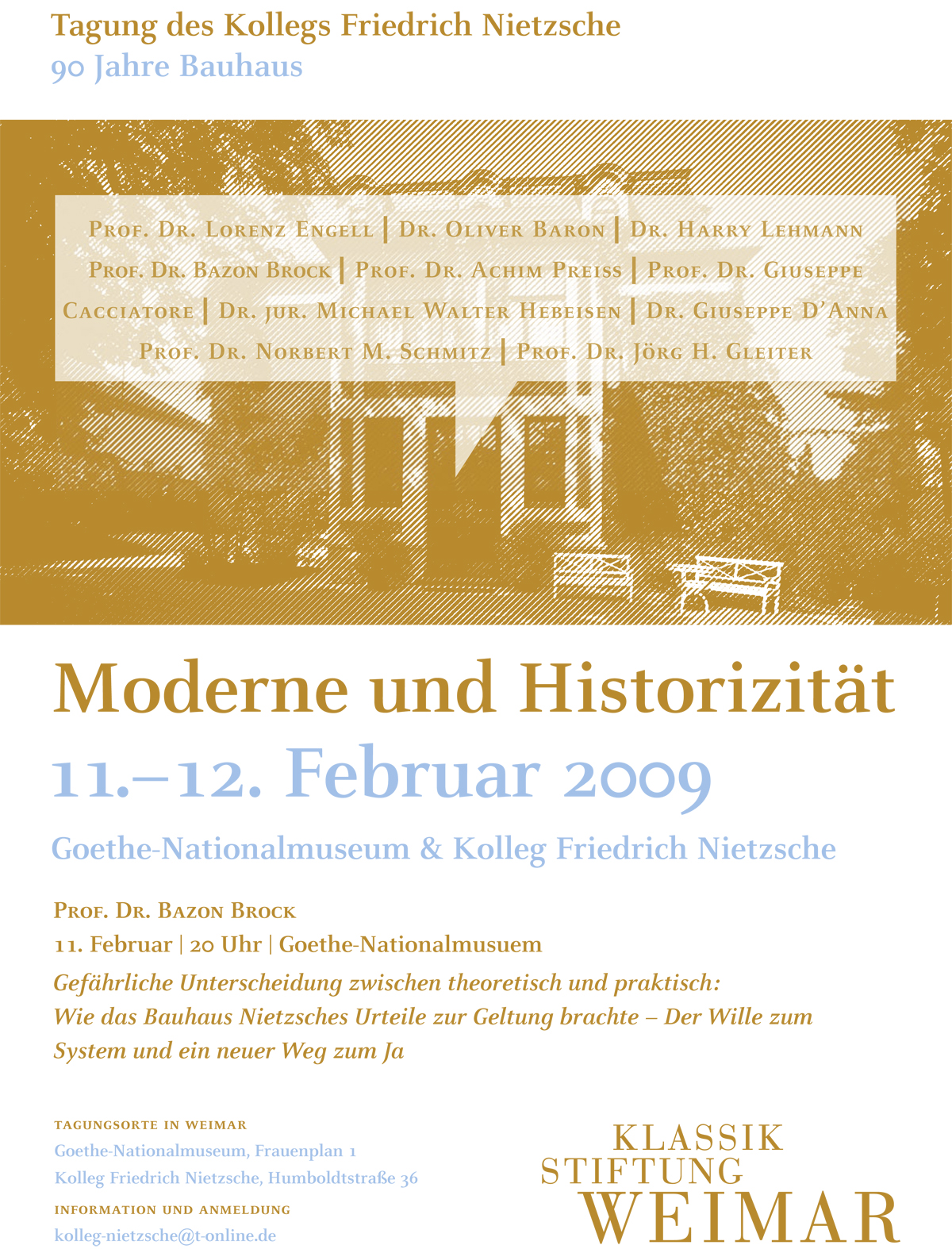 [Das wäre] [d]ie Gemeinschaft derer, die Probleme gemeinsam haben und nicht mehr Überzeugungen, nicht mehr kulturelle Gewissheiten und dergleichen mehr. Das ist das, was mit der Auswirkung von Nietzsches Vorstellungen [von einer] solche[n] Unternehmung[], wie das Bauhaus sie war, gemeint gewesen ist.
