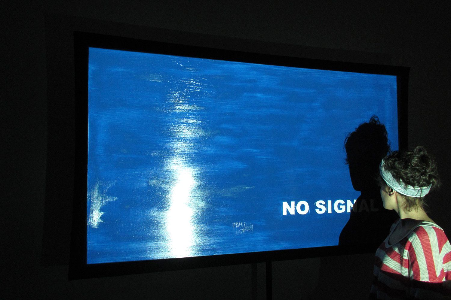 Alexis Dworsky (re)konstruiert einen Raum zur Authentizität des Fakes: Laminatdielen, Plastikblumen und vermeintliche Projektionen. Vorab wird gegaukelt.